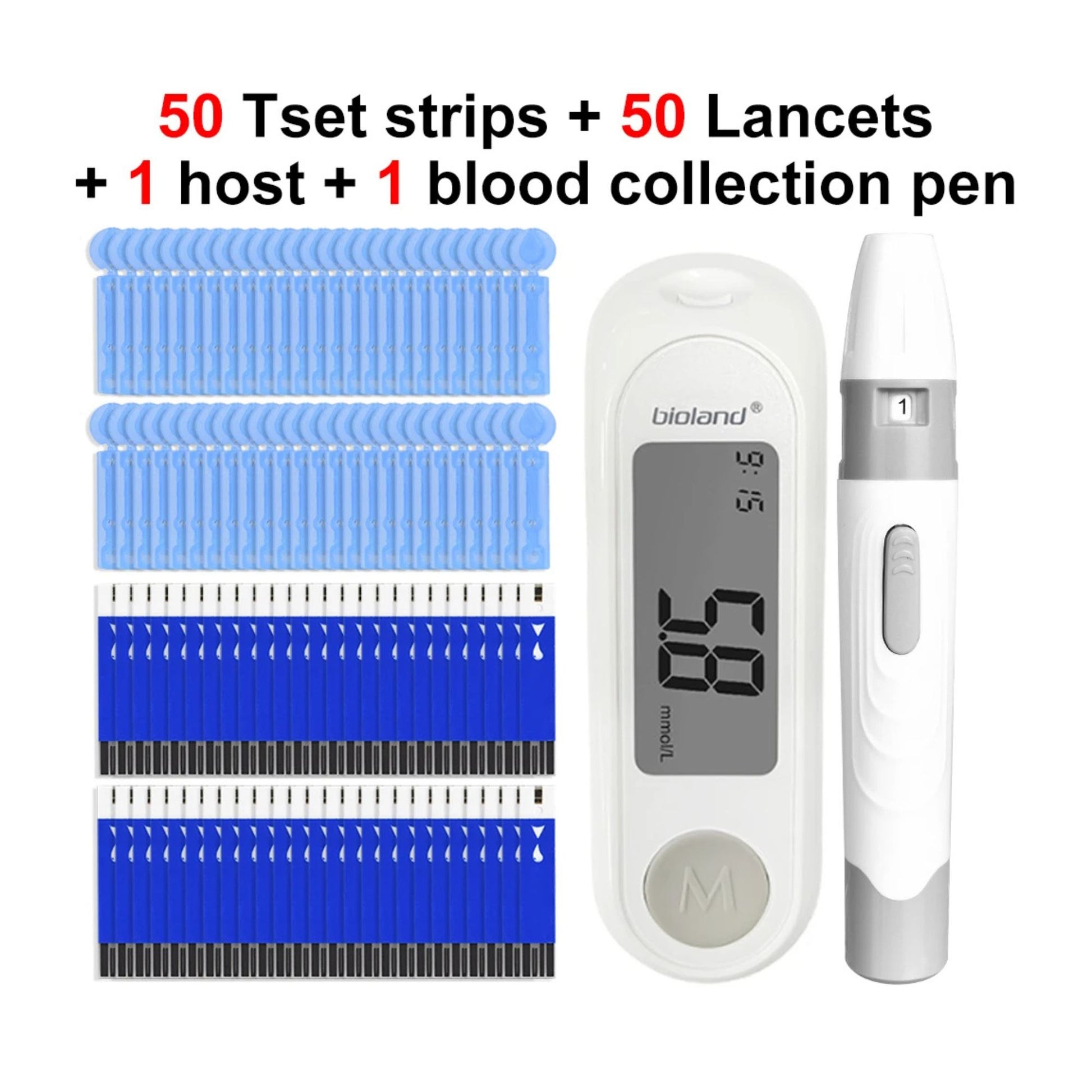 Blood Glucose Meter Diabetes Testing Kit – Glucometer with 50 Test Strips & Lancets, No-Code Plug & Play