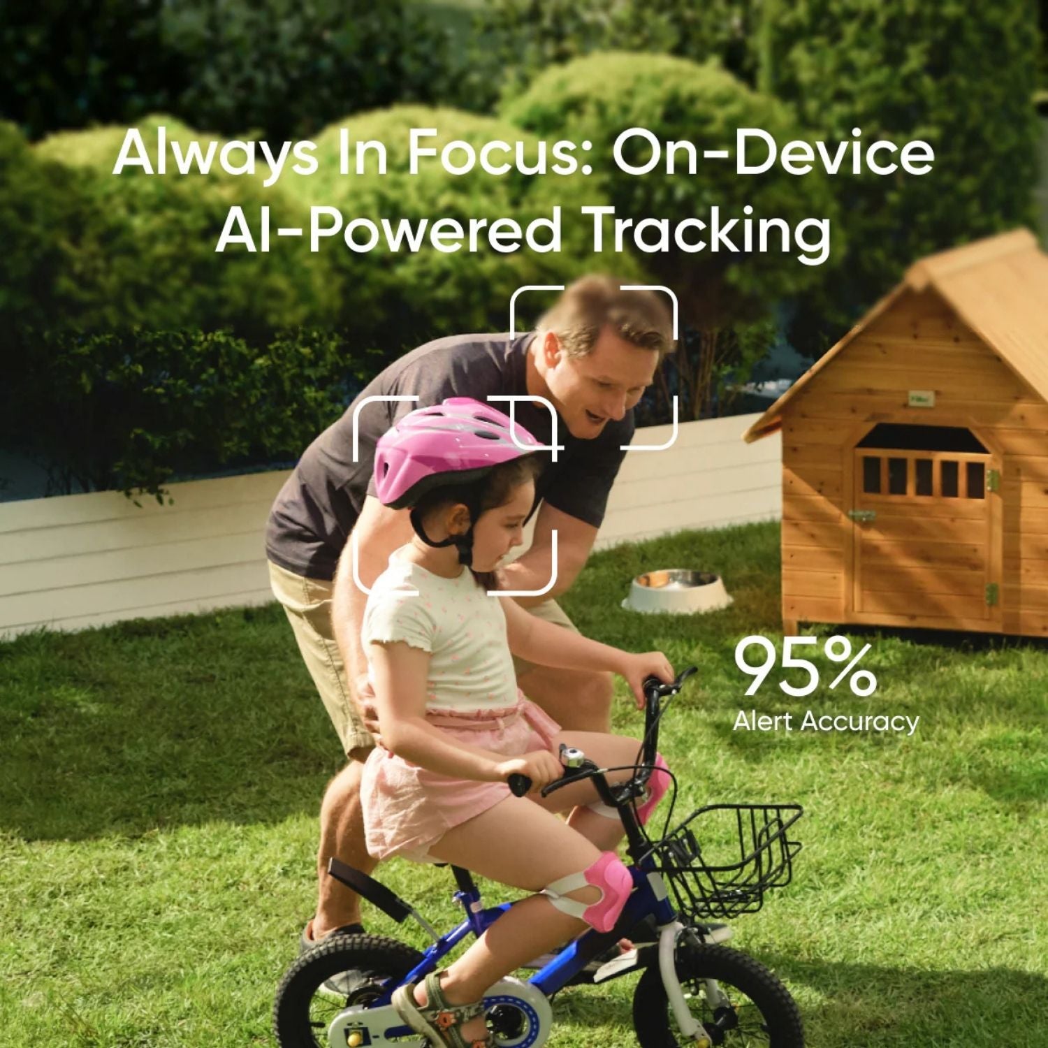 Smart AI Detection – Human and vehicle detection with local storage; advanced recognition with HomeBase 3