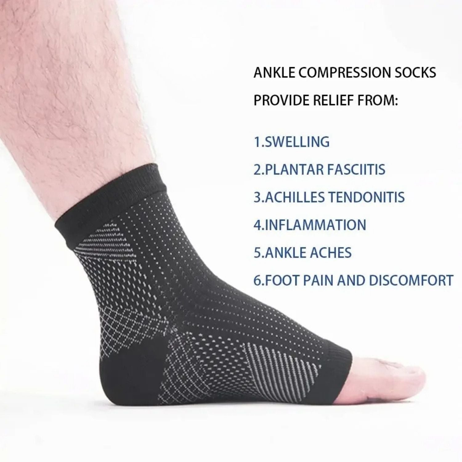 Protect and support your ankles during daily activities, sports, or recovery with these high-quality compression socks. Designed to improve blood circulation, reduce swelling, and relieve pain from plantar fasciitis, neuropathy, tendonitis, or arthritis, these socks are perfect for both men and women. Wear them while running, hiking, playing sports, or even during long periods of standing to maintain comfort and prevent injuries.