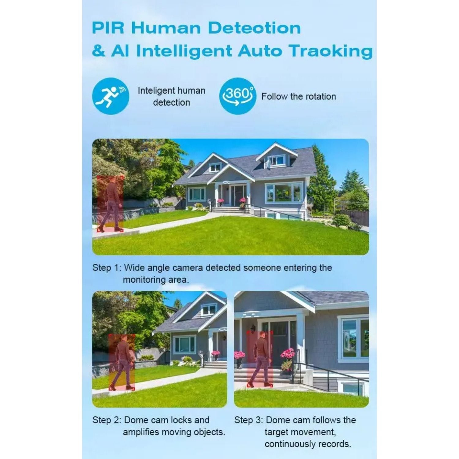 AI Human Detection & Auto-Tracking – Camera automatically follows motion with real-time alerts.