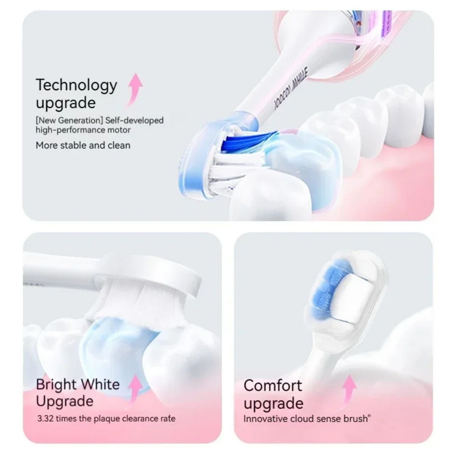 Designed with IPX8 waterproof protection, you can safely use it in the shower or rinse it under water without worry. The toothbrush comes with two interchangeable brush heads—a Soft Cloud Brush Head for sensitive gums and a Bright White Brush Head for whitening and polishing.