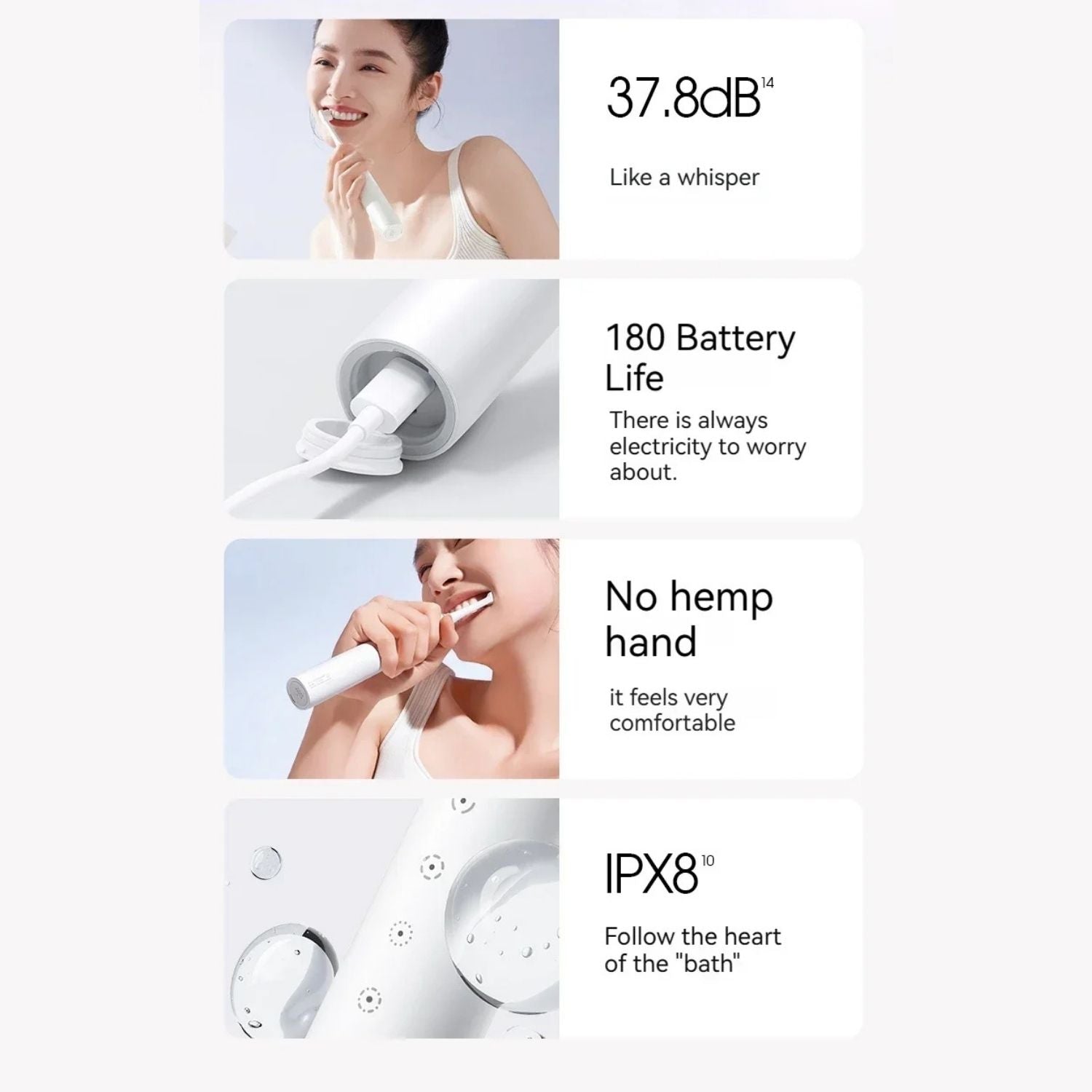 With four cleaning modes, you can personalize your brushing experience, and the powerful 1000mAh battery provides up to 180 days of battery life on a single charge — perfect for home or travel use. Compact yet powerful, this toothbrush combines smart tech with sleek design for superior dental care.